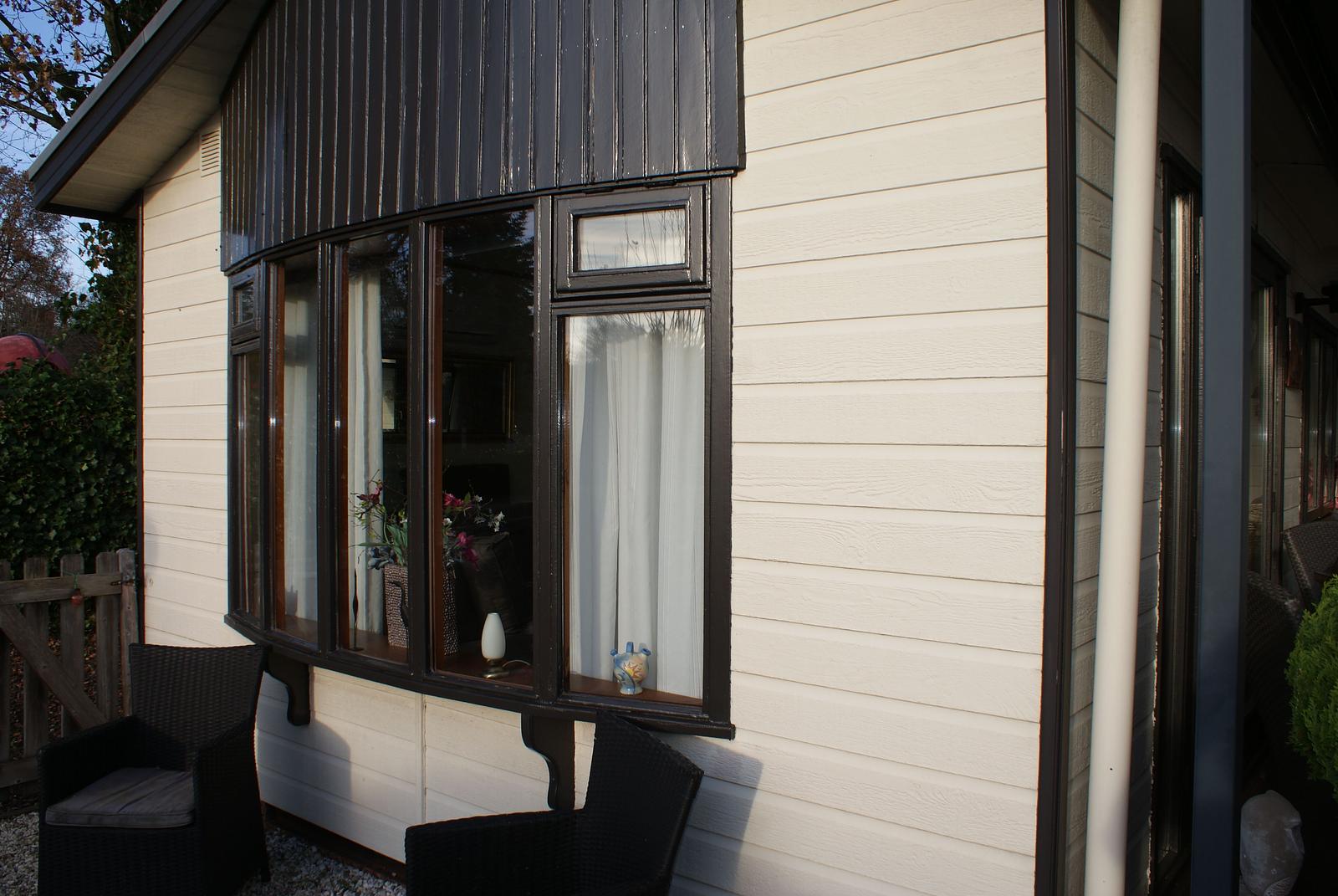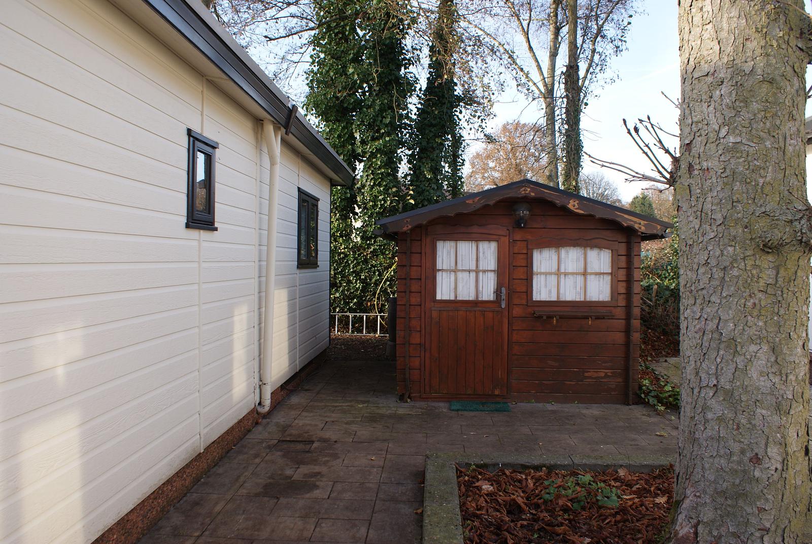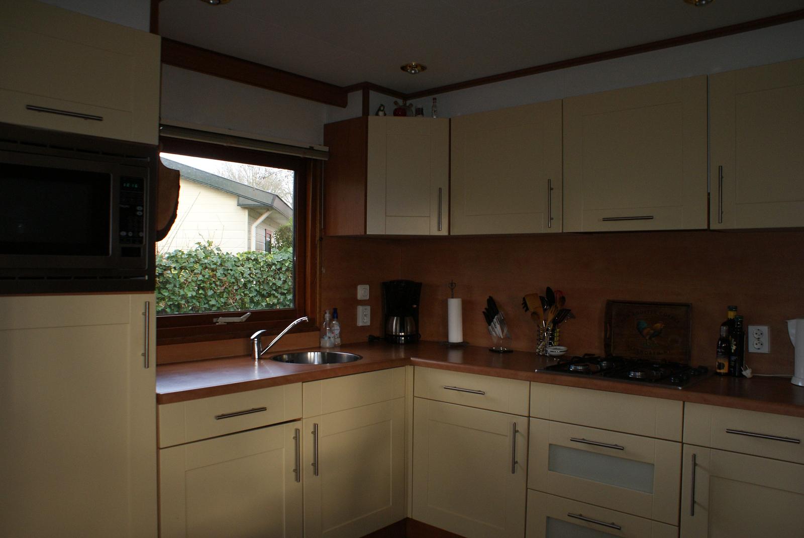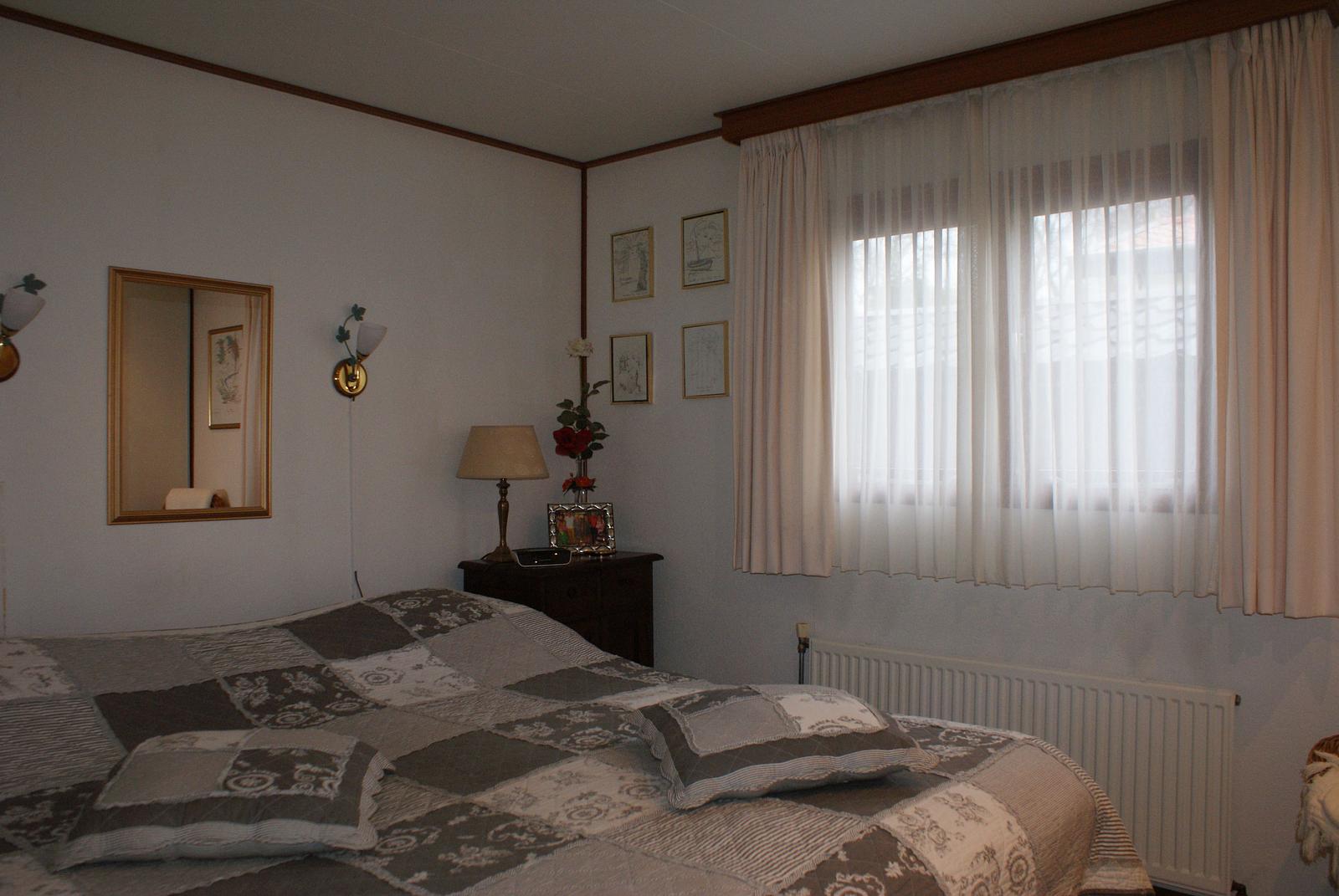 Entree via hal. Ruime gezellige woonkamer voorzien van een erker en openslaande deuren voor extra lichtinval. De woonkamer is tevens voorzien van airco. Fraaie open keuken welke is voorzien van een 4-pits gasstel, afzuigkap, ingebouwde combimagnetron, koelkast en ruim aanrechtblad voor volop werkruimte. Er zijn twee slaapkamers waarvan de ene is voorzien van 1 2-persoonsbed en kastenwand. De andere heeft 2 1-persoonsbedden en ook hier de beschikking over voldoende kastruimte. Volledig betegelde badkamer met douche, wasmeubel, designradiator en wasmachine. Separaat toilet. Het chalet wordt verwarmd middels CV (2017). Buiten beschikt u over een groot, verhoogd terras met overkapping om heerlijk buiten te zitten en lange avonden met familie of vrienden door te brengen. Tevens is er een blokhut aanwezig en beschikt u over een eigen ruime parkeerplaats.