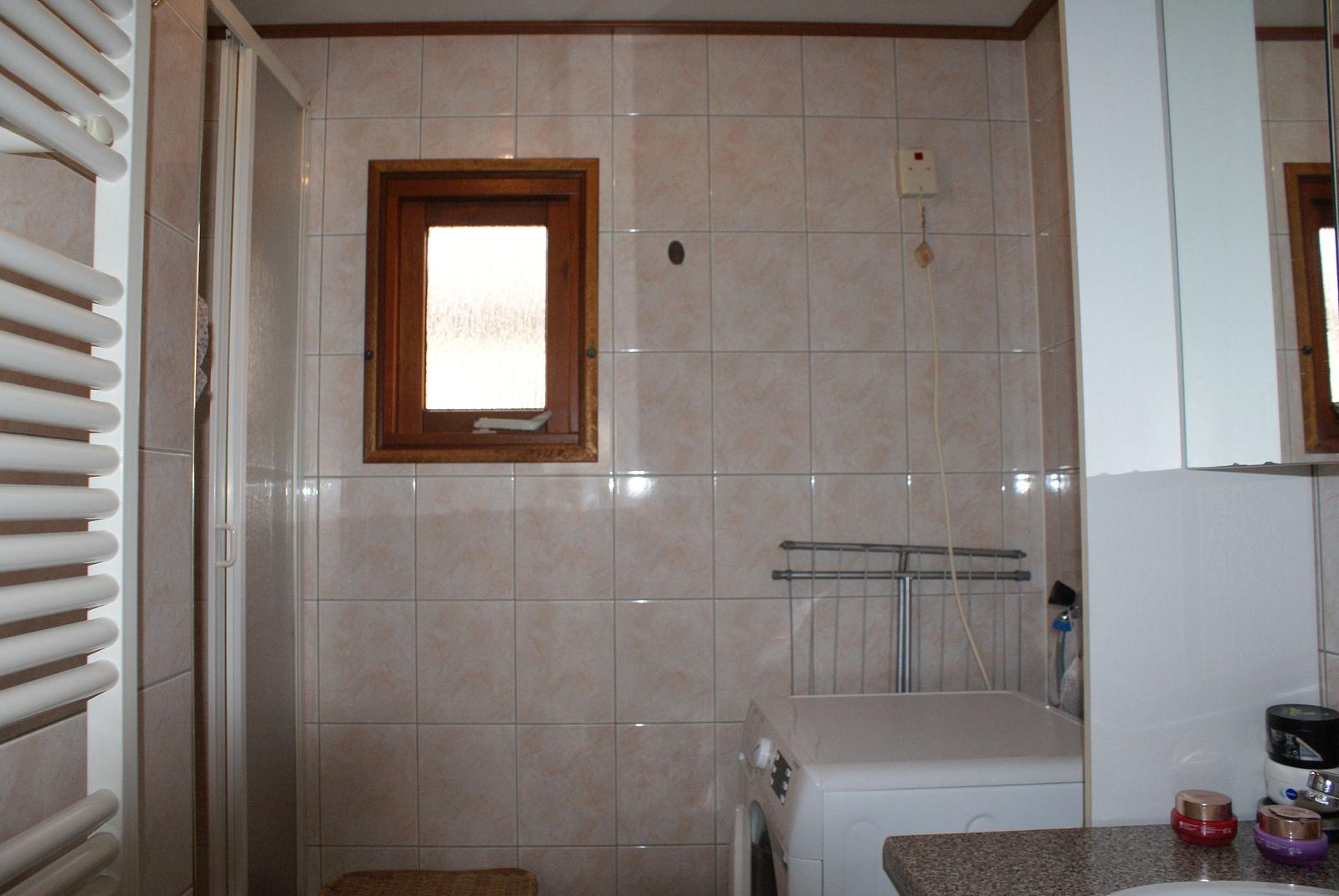 Volledig betegelde badkamer met douche, wasmeubel, designradiator en wasmachine. Separaat toilet.